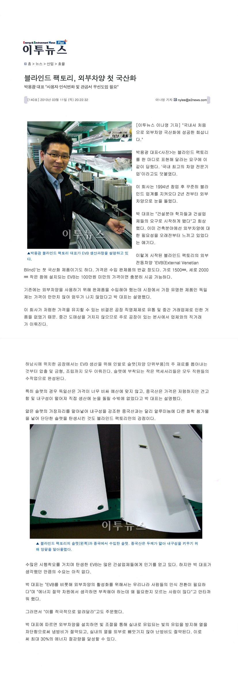 2010³â3¿ù 15ÀÏ 'ÀÌÅõ´º½º'¿¡ ¿ÜºÎÂ÷¾ç¿¡ ´ëÇÑ 'EVB' ÀÎÅͺ並 ÇÏ¿´½À´Ï´Ù.