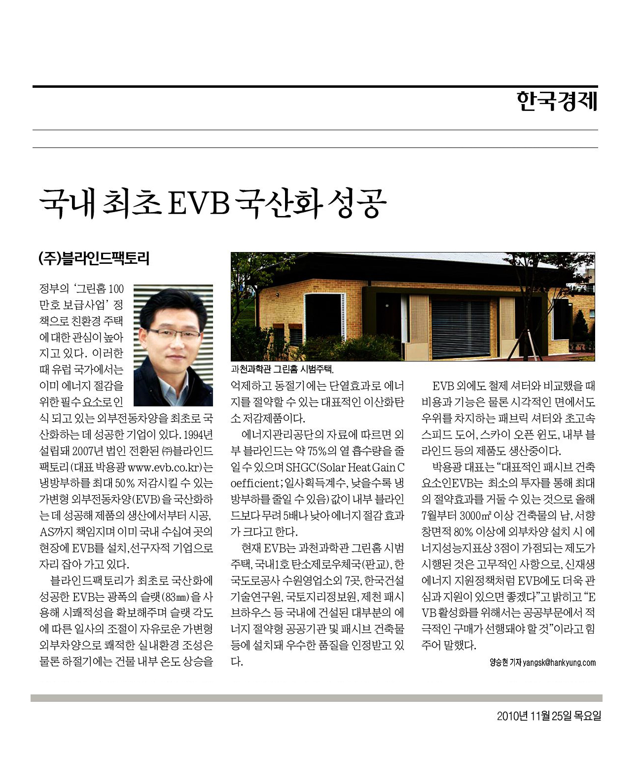 2010³â 11¿ù 25ÀÏ Çѱ¹°æÁ¦½Å¹®¿¡ ¿ÜºÎÀüµ¿ºí¶óÀÎµå ±¹³» ÃÖÃÊ ±¹»êÈ ¼º°ø¿¡ °üÇÑ ±â»ç°¡ °ÔÀçµÇ¾ú½À´Ï´Ù. [ÀÌ °Ô½Ã¹°Àº °ü¸®ÀÚ´Ô¿¡ ÀÇÇØ 2011-11-18 19:04:32 ºí¶óÀεåÆÑÅ丮 ¼Ò½Ä¿¡¼ º¹»ç µÊ]